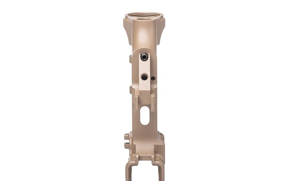 - Upper Tension Screw – Allows users to fine tune the fit of the upper and lower receiver through the use of a nylon tipped tensioning set screw inserted in the grip tang of the lower receiver. This provides a tight fit with any standard AR15 upper receiver.