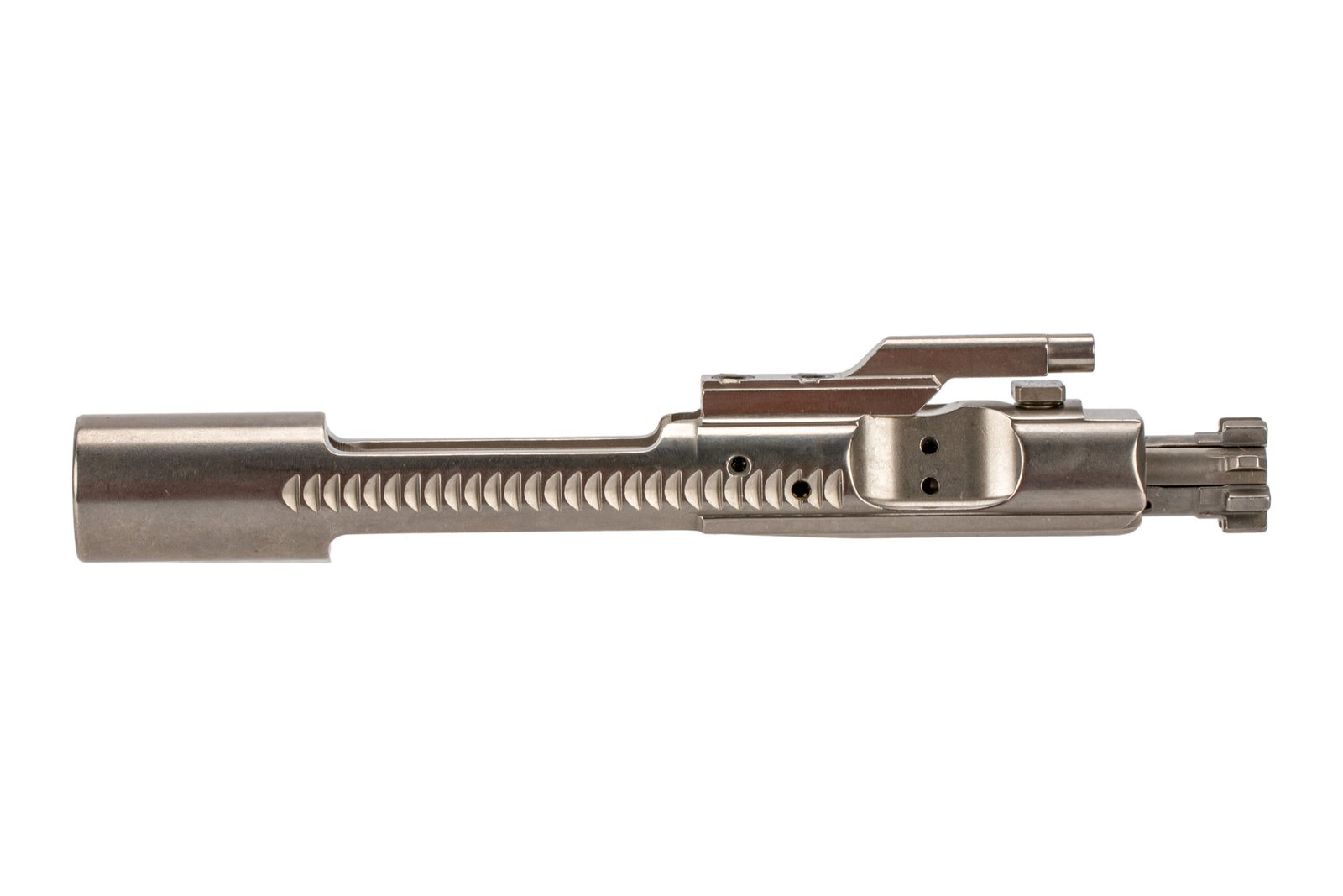 Nickel Boron is a top of the line coating, with its superbly smooth finish. It is engineered to minimize on friction by cutting down the surface to surface contact between sliding parts. This finish not only reduces the friction, but it also dissipates heat, allowing for the least wear and tear. It also makes cleaning the bolt carrier group much easier.