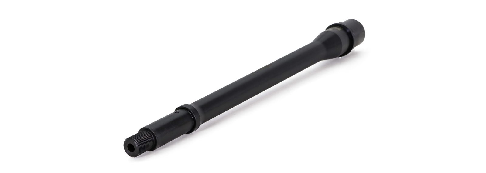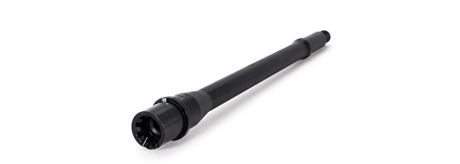 The Gunner profile is a blend of two popular profiles, Government from the extension to the gas block, tapering to a shoulder and a 1.1″ journal .625″ gas block, then a Pencil profile out front. This barrel has a mid-length gas system to help smooth out system cycling.