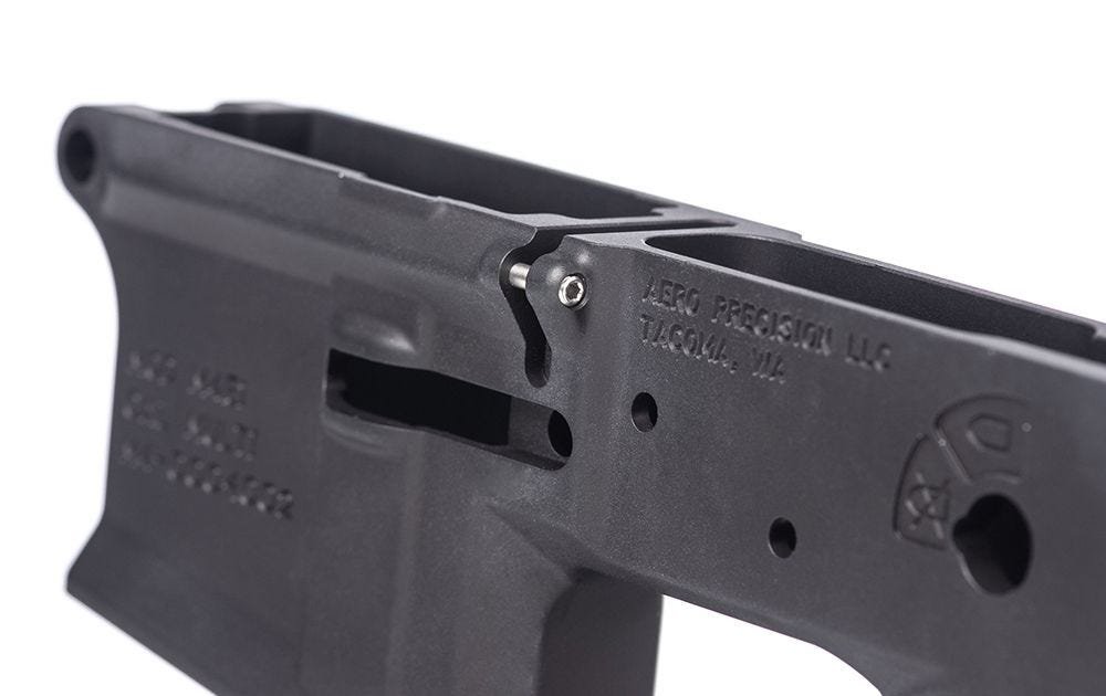 Don’t forget to buy an Aero Precision M5 (.308) Lower Parts Kit, specifically designed to work with the M5 Lower Receiver and includes custom takedown and pivot pins as well as an extended magazine catch button.