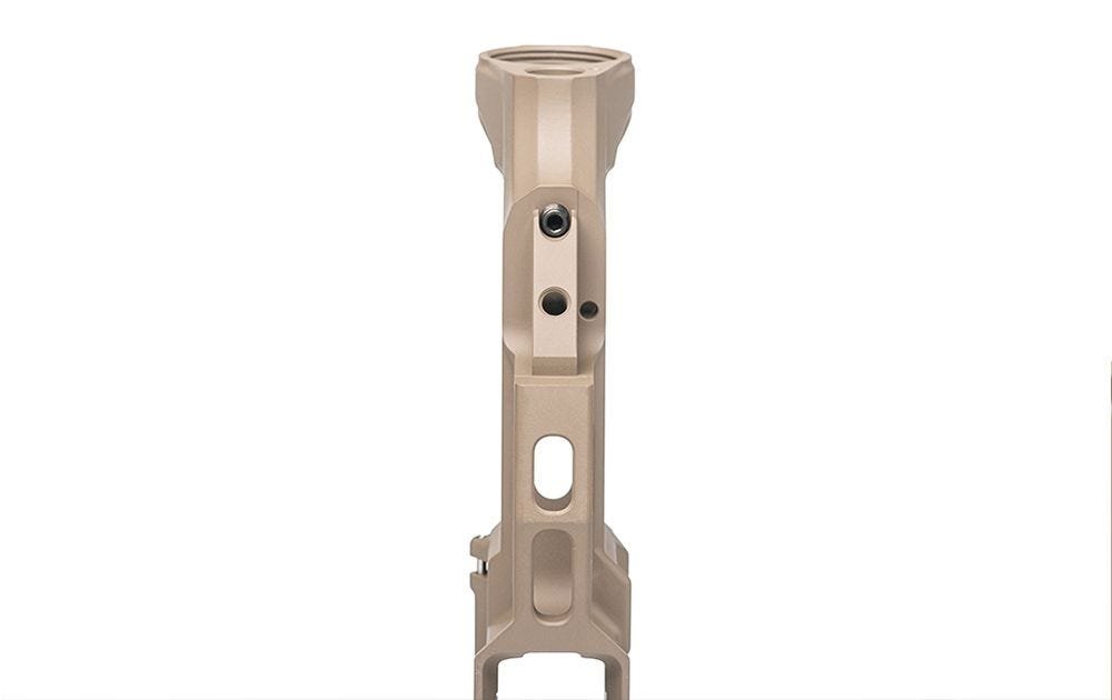 - Upper Tension Screw – Allows users to fine tune the fit of the upper and lower receiver through the use of a nylon tipped tensioning set screw inserted in the grip tang of the lower receiver.